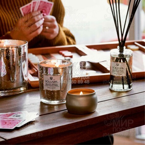 Для создания уютной и романтической атмосферы, насыщенной расслабляющим или возбуждающим ароматом, идеально подойдут аромасвечи Voluspa. Мерцание свечи не только наполнит пространство теплом, но и позволит погрузиться в состояние покоя и умиротворения. Наполнитель свечи выполнен из 100% кокосового воска, не содержит продуктов животного происхождения. Хлопковый фитиль гарантирует равномерное горение. Наполнитель изготовлен по особой технологии, что обеспечивает одинаковую интенсивность насыщения воздуха ароматом.
