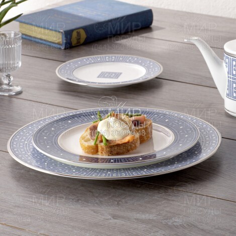 Изделия из серии Infinity Blue от японского производителя Noritake украшены смелый узор с выпуклыми эмалевыми точками и платиновыми полосами двух типов.