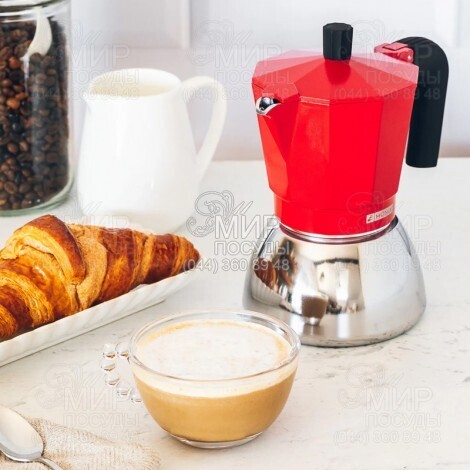 Мир посуды - Кухонная посуда - Кофеварки и турки - Гейзерные кофеварки - Гейзерная кофеварка на 6 чашек Induction Inox red 370мл M863106
