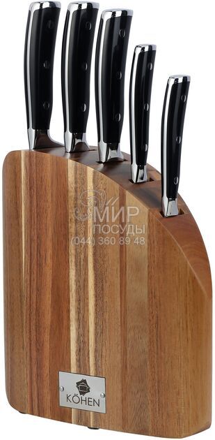 Набор ножей Prestige Pro Blade от немецкого бренда Kohen изготовлен из из хром-молибден-ванадиевой стали марки 5CR15MOV (1.4116) с технологией низкотемпературной закалки. Гарантированная устойчивость к деформации и коррозии в течение длительного времени. Эргономичная кованая ручка из нержавеющей стали 430# и термостойкого прочного ABS пластика.