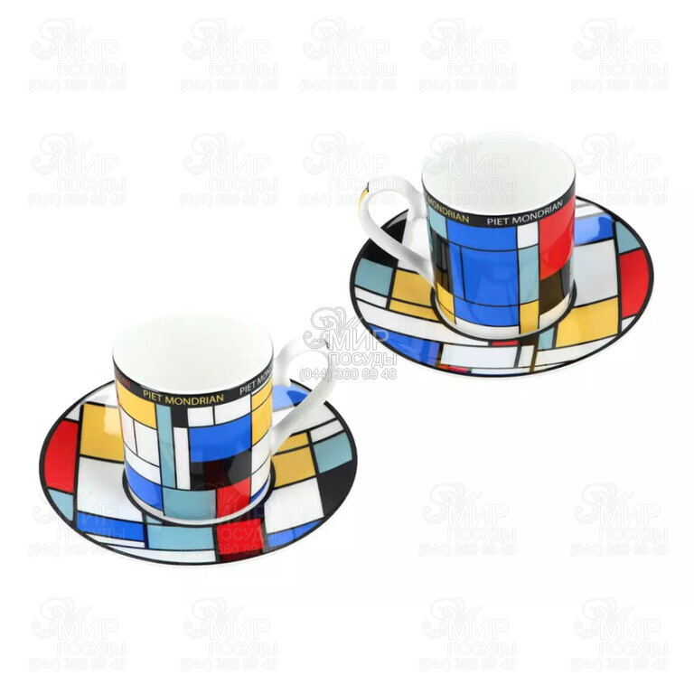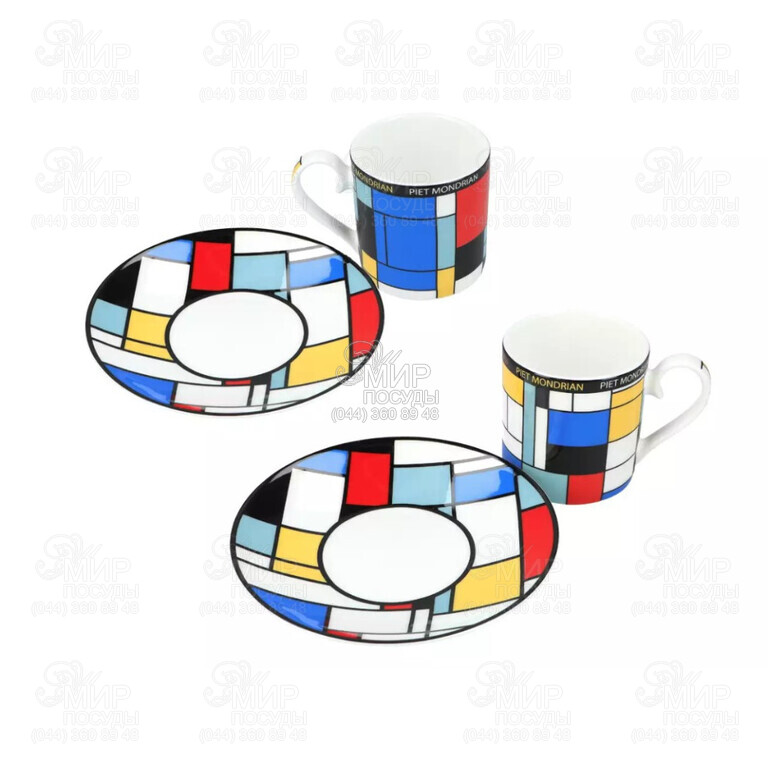 Мир посуды - Столовая посуда - Чашки - Наборы кофейных чашек - Набор чашек для кофе с блюдцами Пит Мондриан Композиция А 120мл 850-0302