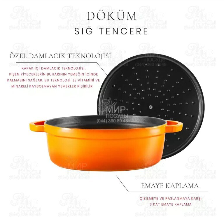 Кастрюля от французского бренда Voeux на 100 % изготовленная из чугуна. Внутренняя часть покрыта прочной эмалью с высокой устойчивостью к кислотам и коррозии. На 80% изготовленная вручную, надолго сохраняет свои яркие цвета благодаря двум слоям специальной краски. С помощью данной кастрюли Вы можете готовить множество различных блюд самым здоровым способом, используя меньше масла и сохранить все витамины, минералы и клетчатку во время приготовления блюд.