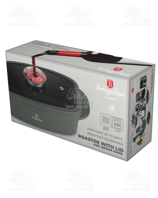 Гусятница с крышкой Matte Green 4,65л BH-6545