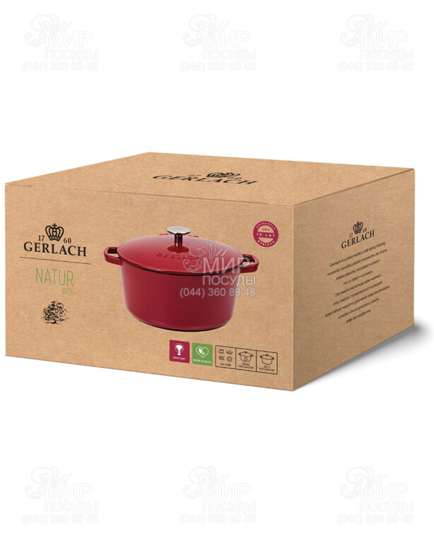Кастрюля Natur Iron от польского производителя Gerlach изготовлена из сплава железа и углерода. Этот материал ценится за долговечность. Он не только служит долгие годы, но и отлично сохраняет тепло, что позволяет экономить электроэнергию. Кастрюля покрыта экологической и антиаллергенной эмалью, что увеличивает долговечность кастрюли и снижает риск появления ржавчины. Крышка имеет выступы, поддерживающие циркуляцию воздуха и водяного пара, что в сочетании с прочной конструкцией позволяет сохранять тепло еще дольше.