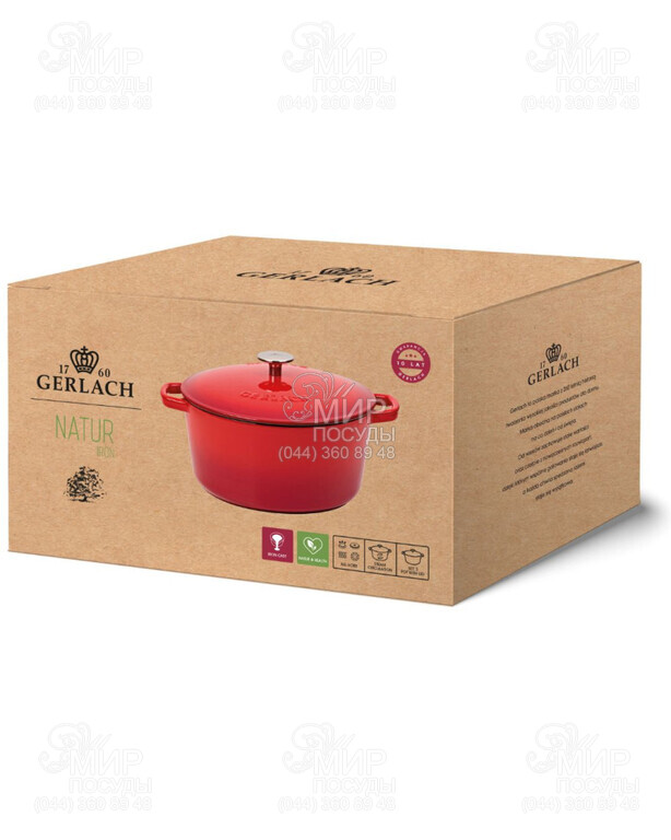 Кастрюля Natur Iron от польского производителя Gerlach изготовлена из сплава железа и углерода. Этот материал ценится за долговечность. Он не только служит долгие годы, но и отлично сохраняет тепло, что позволяет экономить электроэнергию. Кастрюля покрыта экологической и антиаллергенной эмалью, что увеличивает долговечность кастрюли и снижает риск появления ржавчины. Крышка имеет выступы, поддерживающие циркуляцию воздуха и водяного пара, что в сочетании с прочной конструкцией позволяет сохранять тепло еще дольше.