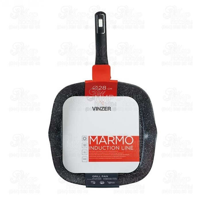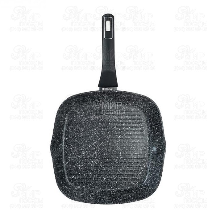 Сковорода-гриль Marmo от Vinzer изготовлена из литого алюминия с антипригарным покрытием. Алюминий обладает высокой теплопроводностью, устойчив к коррозии, воздействию высоких температур и деформации. На дне установлен антидеформационный индукционный диск, поэтому сковорода подходит для использования на всех видах плит. Антипригарное трехслойное покрытие Quantanium безопасно для человека и окружающей среды. Удобная эргономичная ручка покрыта нескользящим покрытием soft touch.