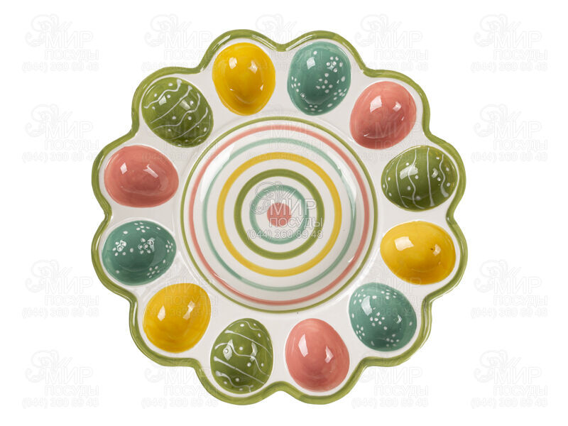 Блюдо для яиц от Lefard China изготовлено из керамики. Данное изделие станет приятным и незаменимым аксессуаром к светолу празднику Пасха. Изделие не выделяет опасных веществ при использовании, не впитывает запахи и легко моется.