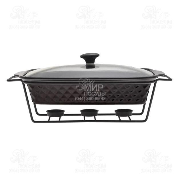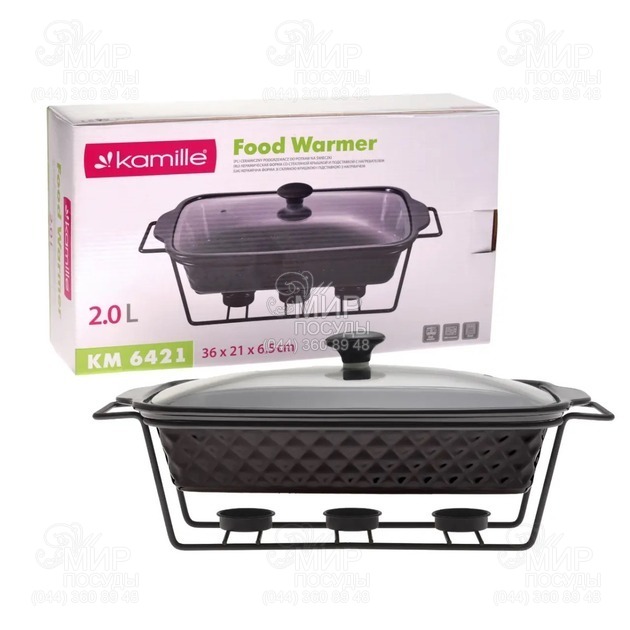 Керамический мармит Kamille – отличное устройство для подачи горячих вторых блюд. Изготовлен из высококачественных материалов с применением современных технологий производства. Керамическая форма с крышкой подходит для использования в духовых шкафах и микроволновках, а в комплекте с ней идет удобная металлическая подставка с подсвечником для подогрева блюд. Такой керамический мармит с подставкой обладает привлекательным внешним видом и очень удобен в использовании, благодаря чему он непременно украсит Ваш праздничный стол.