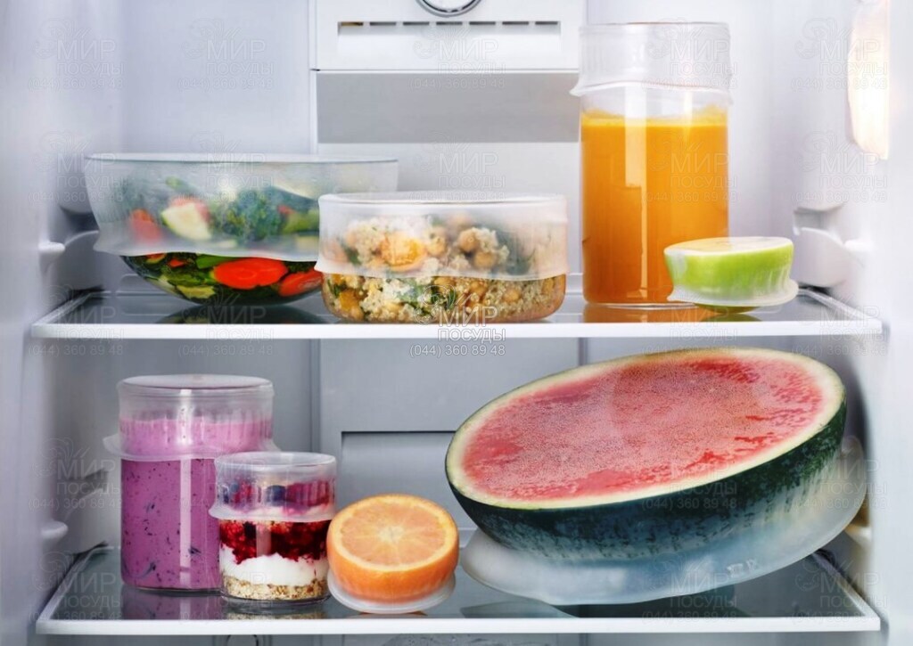 Гибкие и многоразовые крышки из 100% платинового силикона могут использоваться для герметичного хранения продуктов в холодильнике, без утечки запахов, сохраняя продукты свежими дольше. Они идеальная альтернатива пищевой пленке, алюминиевой фольге и одноразовому пластику. Крышки можно растягивать для контейнеров разного диаметра. Благодаря эластичности продуктов они легко приспосабливаются к емкостям любого размера даже половинкам фруктов или овощей.