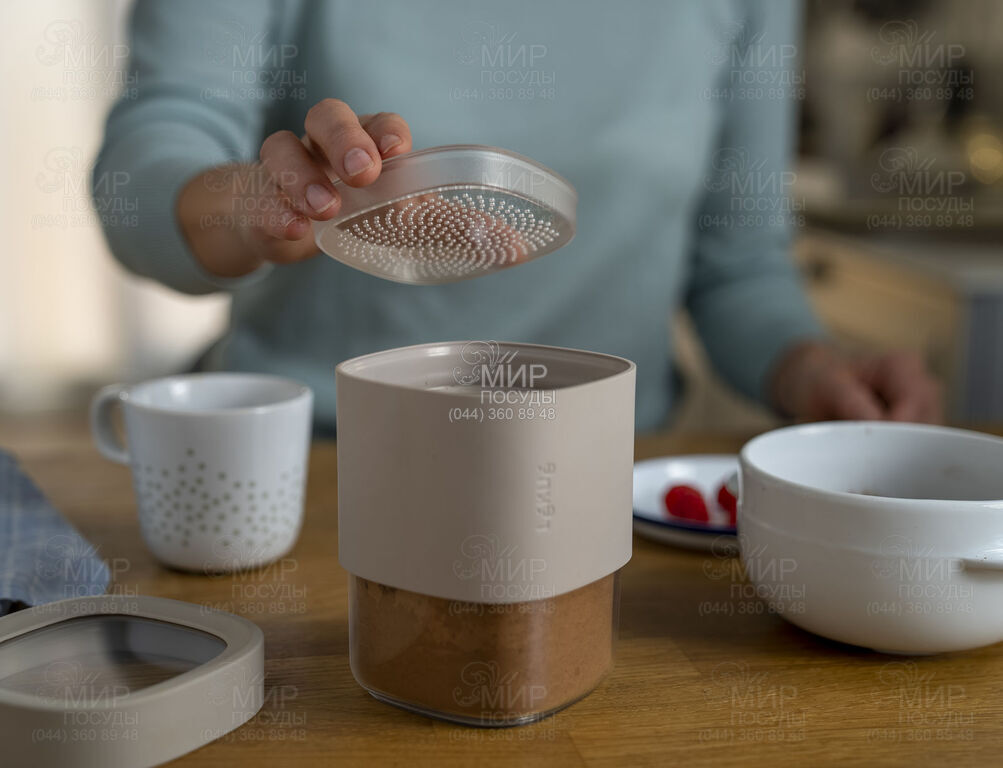 Новая коллекция Save&Store от Lekue – это ответ на необходимость максимизировать и сэкономить пространство на кухне, специально предназначенное для хранения сухих ингредиентов. Эффективная силиконовая система закрывания предотвращает проникновение влаги внутрь контейнера и предотвращает контакт продуктов с внешней средой. Кроме того, поскольку силикон прилегает к наружной стороне, это уменьшает накопление остатков пищи в щелях. В комплект входят 2 крышки, одна идеально подходит для порошкообразных продуктов, таких как какао или мука, а второй - для более крупных ингредиентов. Аксессуары легко устанавливать и снимать.