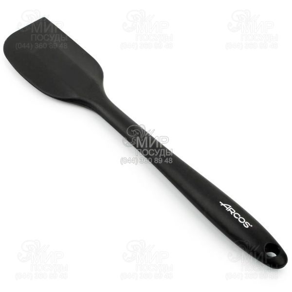 Лопатка от испанского бренда Arcos изготовлена из силикона, который бережно относится к емкостям с антипригарным покрытием и достаточно прочного для повседневного использования.