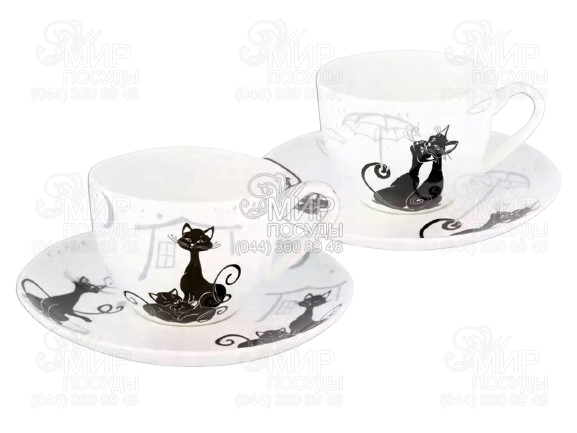 Набор чашек для чая с блюдцами Crazy Cats 250мл 017-3101