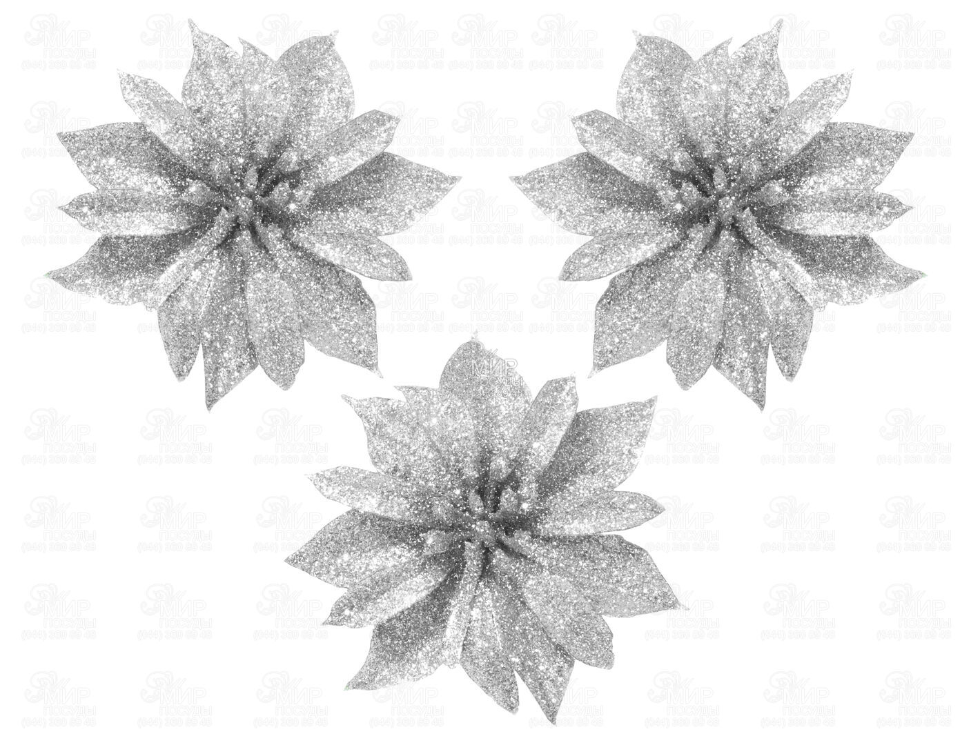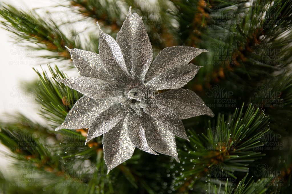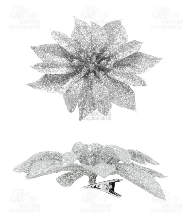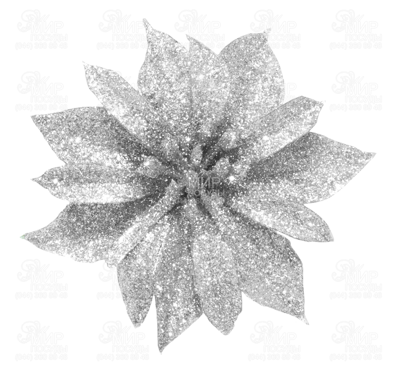 Мир посуды - Домашний интерьер - Новогодний декор - Ёлочные игрушки - Набор ёлочных украшений Цветок серебристый с блестками 8,5см 5900410223981