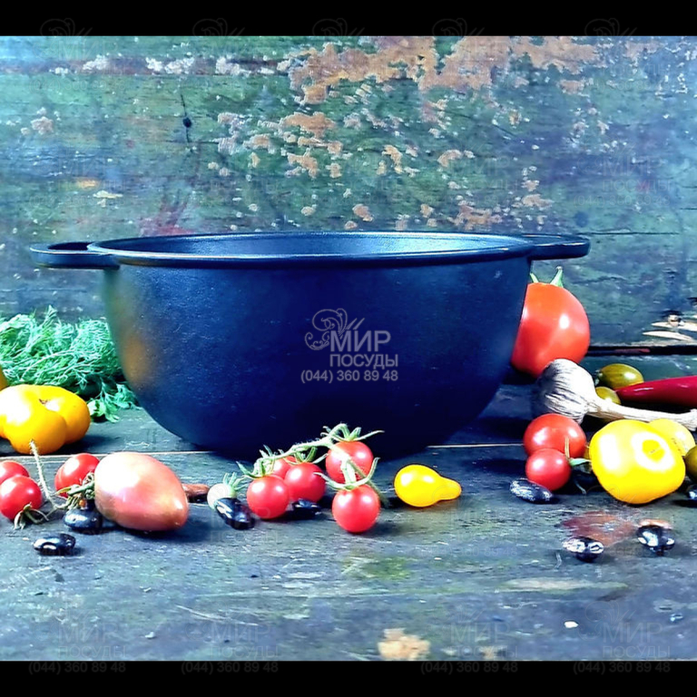 Котелок от украинского бренда Maysternya изготовлен из чугуна. Покрытие на чугунной посуде образуется в процессе прокаливания, а в процессе приготовления оно постоянно обновляется. Но это не антипригарное покрытие, а тончайшая полимерная пленка из запеченного масла, которая защищает изделие от коррозии, а также обладает гидрофобными свойствами (отталкивает воду). И потому, чтобы не прилипало, готовить нужно с растительным маслом. Чугун обладает хорошей теплопроводностью, что позволяет равномерно прогревать всю поверхность емкости.