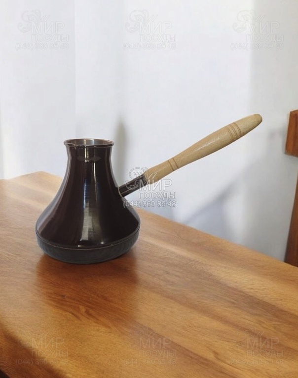 Турка украинского производства изготовлена из меди М1, идеально сочетает в себе прочность и стиль. Пищевое олово внутри защищает от контакта с медью и оставляет чистый вкус, а наружное покрытие из черного никеля придает современной элегантности. Дубовая ручка, надежно припаянная через медную трубку, делает процесс приготовления кофе удобным и безопасным.