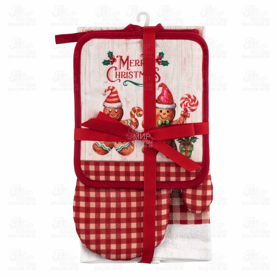 Мир посуды - Кухонные аксессуары - Рукавицы, прихватки, фартуки - Набор прихваток + полотенце кухонное Christmas Gingerbread Имбирное печенье ART14HGR