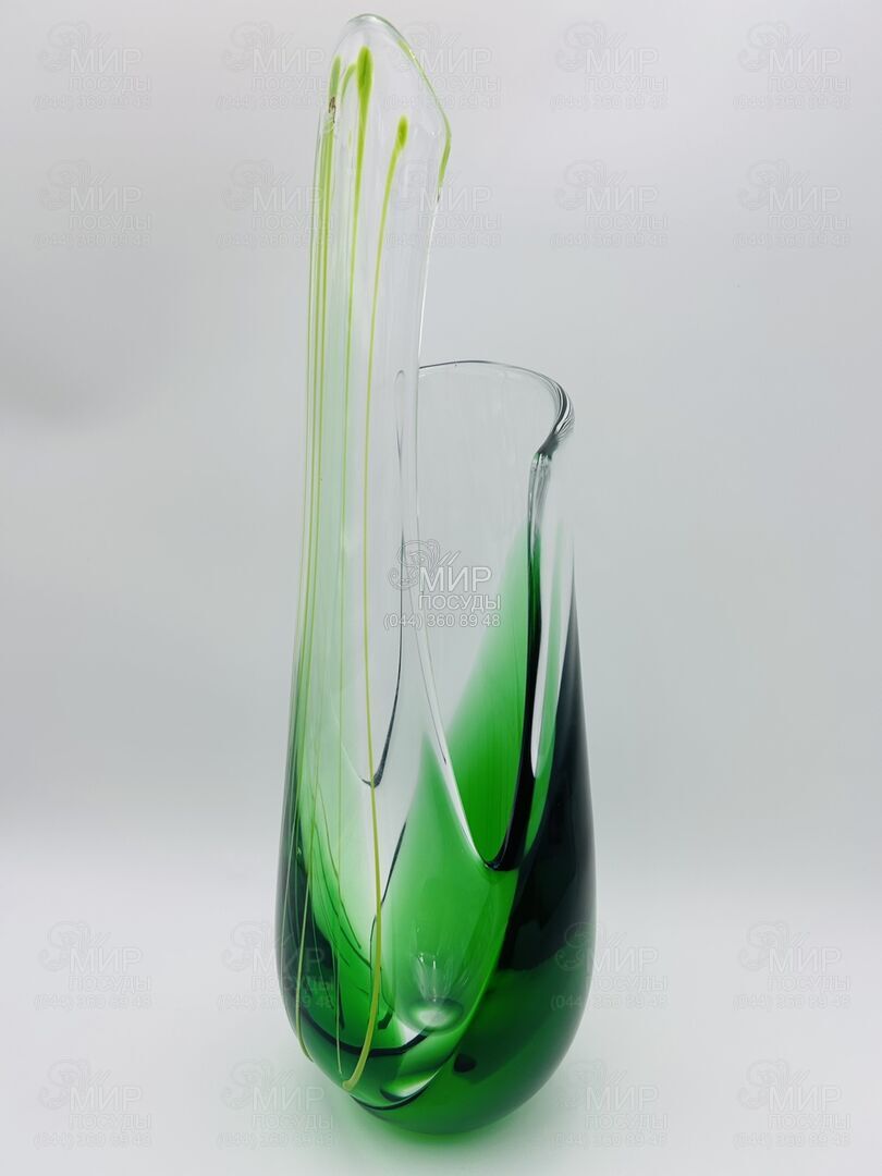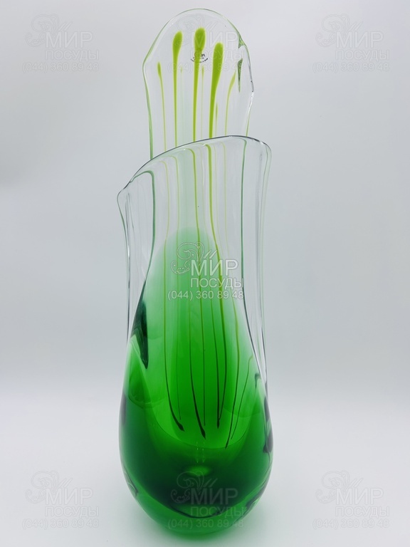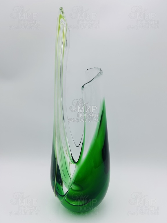 Ваза от чешского производителя изготовлена из стекла. Помимо изящно округой формы с вырезом, ваза обладает великолепным прозрачно-зеленым цветом, что превращает изделие в элегантное украшение интерьера. Толстые стенки вазы делают ее массивной, что придает интерьеру пышности и нарядности.