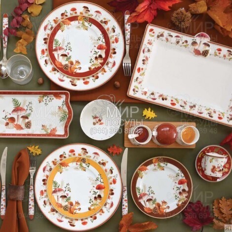 Коллекция Autumn Breeze от Easy Life – это настоящее воплощение тепла и уюта осенних дней. Изящные фарфоровые изделия украшены волшебными иллюстрациями лесных мотивов: спелые грибы, желуди, шишки, кленовые листья и маленькие белочки создают атмосферу домашнего комфорта. Эта коллекция станет отличным выбором для семейных обедов, осенних праздников или просто для того, чтобы наполнить будни нотками природы и покоя.