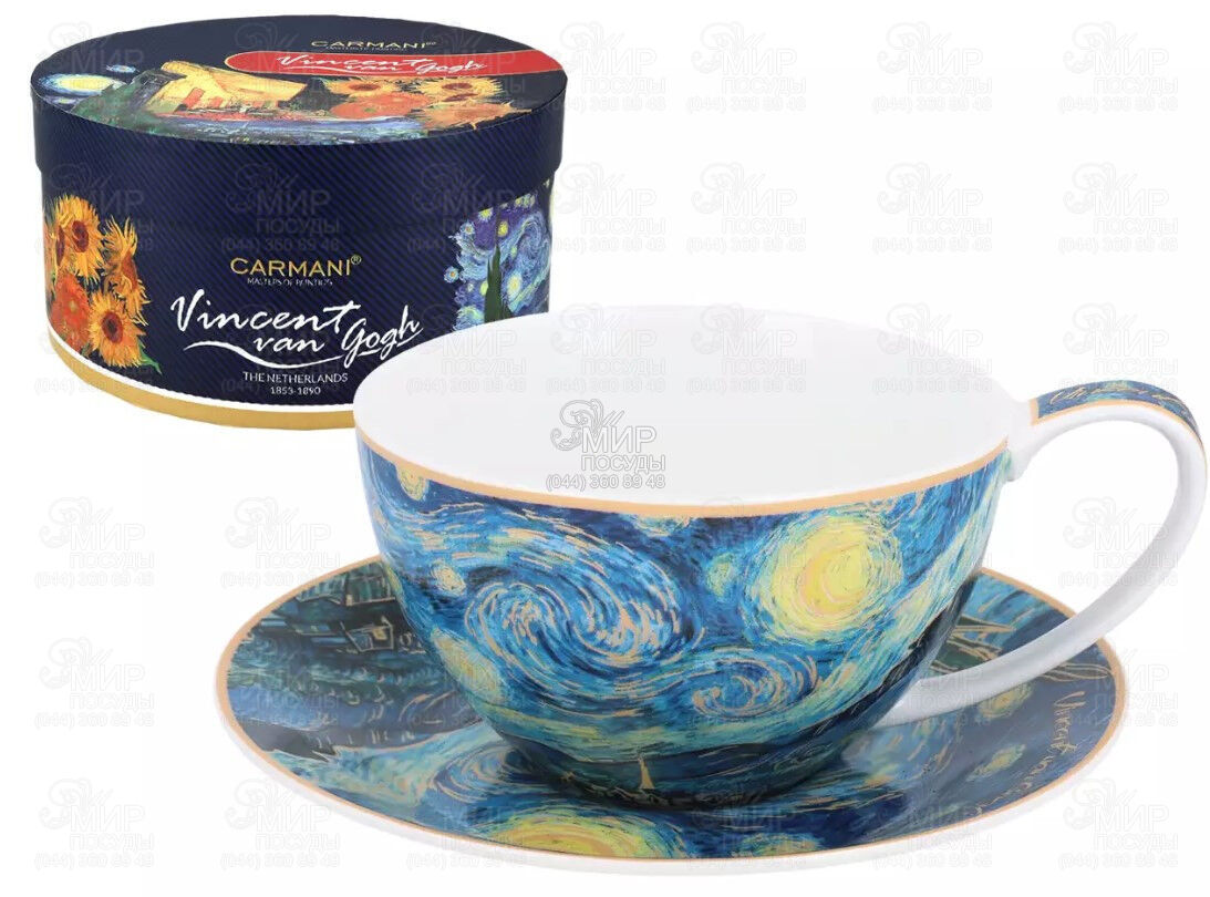 Чашка для чая с блюдцем Винсент ван Гог Звездная ночь 350мл...
