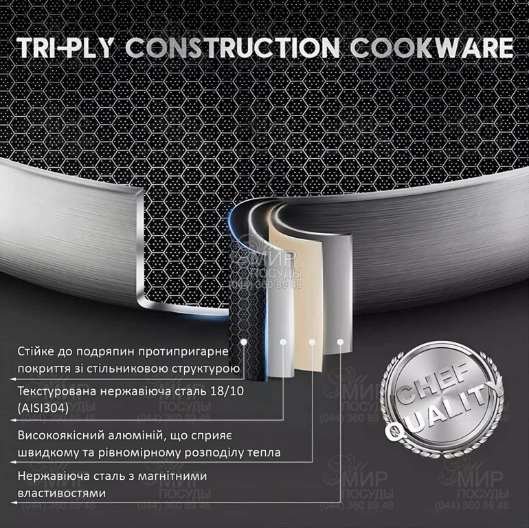 Сковорода премиальной серия Infinity от немецкого бренда Kohen изготовлена из высококачественной нержавеющей стали, имеет сверхпрочную и долговечную трехслойную конструкцию, за счет чего не деформируется и равномерно распределяет тепло по всей поверхности в процессе эксплуатации. Имеет рельефное противопригарное покрытие HoneyComb, устойчивое к механическим повреждениям и безопасное для использования металлических кухонных приборов. Ручка не нагревается во время приготовления. Данную серию можно использовать в духовых шкафах.