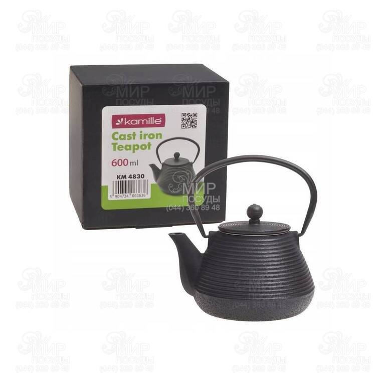 Чайник Kamille изготовлен из чугуна и имеет глянцевое эмалированное покрытие, благодаря которому напиток не контактирует с чугуном, и, соответственно, не образуется ржавчина, и не возникает металлический привкус у напитка. Фильтр-ситечко из нержавеющей стали – дополнительная гарантия долгого срока службы. Чай получается вкусным и полезным, поскольку чугун – экологически чистый металл, прекрасно удерживает тепло, что позволяет заваривать чаи или травы при требуемой температуре и полностью раскрывать их настоящий вкус и аромат. Благодаря толстым стенкам, он долго сохраняет напиток горячим – гораздо дольше, чем стеклянные, керамические или фарфоровые чайники. Важный момент при использовании чугунного чайника – обязательно перед завариванием чая ополосните его кипятком, чтобы чугун предварительно разогрелся.