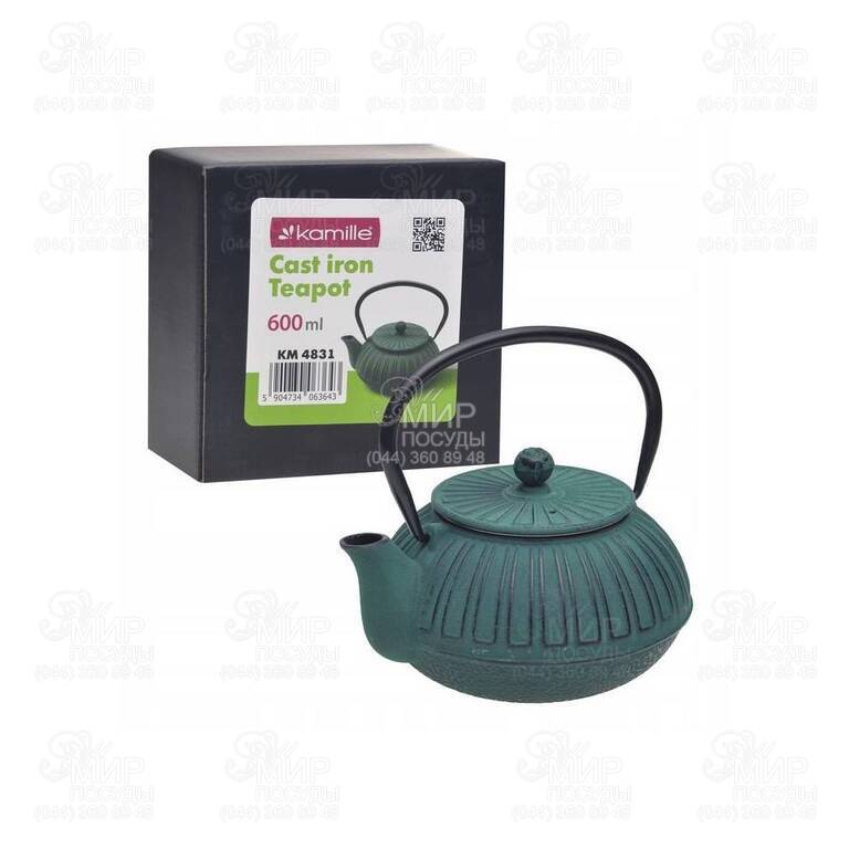 Чайник Kamille изготовлен из чугуна и имеет глянцевое эмалированное покрытие, благодаря которому напиток не контактирует с чугуном, и, соответственно, не образуется ржавчина, и не возникает металлический привкус у напитка. Фильтр-ситечко из нержавеющей стали – дополнительная гарантия долгого срока службы. Чай получается вкусным и полезным, поскольку чугун – экологически чистый металл, прекрасно удерживает тепло, что позволяет заваривать чаи или травы при требуемой температуре и полностью раскрывать их настоящий вкус и аромат. Благодаря толстым стенкам, он долго сохраняет напиток горячим – гораздо дольше, чем стеклянные, керамические или фарфоровые чайники. Важный момент при использовании чугунного чайника – обязательно перед завариванием чая ополосните его кипятком, чтобы чугун предварительно разогрелся.