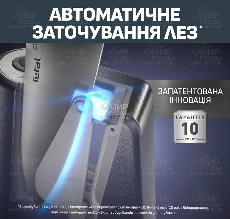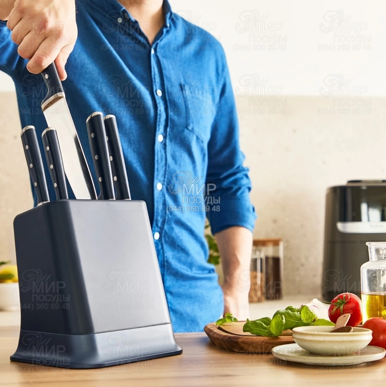 Набор ножей Eversharp от Tefal идеально подходит для ежедневного использования. Ножи затачиваются под верным углом благодаря системе двойного V-образного направления. Лезвия затачиваются по всей длине и под оптимальным давлением благодаря подвижным керамическим стержням, когда Вы достаете ножи и ставите их на место. С Tefal EverSharp не нужно думать, чем и как заточить нож. Запатентованная разработка Tefal EverSharp упрощает процесс заточки лезвия на 100%. Процесс нарезки всегда будет точным и легким, потому что лезвие ножей всегда острое. Высококачественное лезвие из немецкой нержавеющей стали X50Cr15MoV обеспечивает долговечность, стойкость к коррозии и длительную остроту.