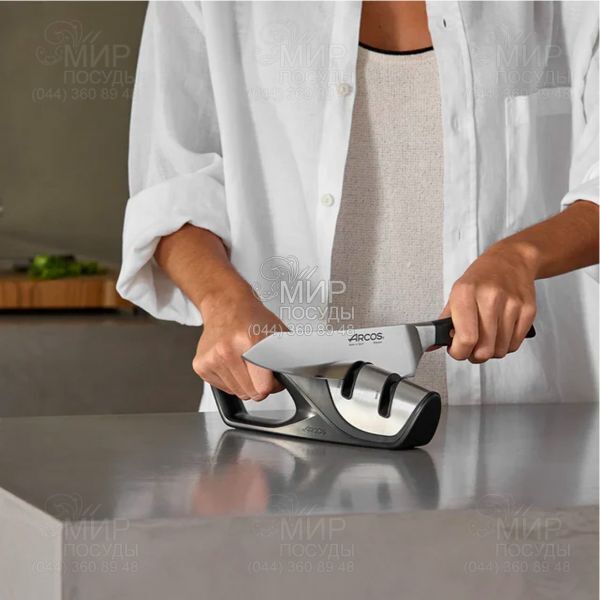 Точилка для ножей Arcos – это современный и удобный инструмент, предназначенный для быстрого и эффективного восстановления остроты кухонных лезвий. Модель сочетает надежность, простоту использования и эргономичный дизайн, благодаря чему процесс заточки становится максимально безопасным и комфортным даже для тех, кто делает это впервые. Точилка оснащена двумя рабочими слотами – Coarse и Fine, что позволяет выполнять как первичную грубую обработку лезвия, так и финишное доведение до идеальной остроты. Благодаря продуманной конструкции и качественным абразивам, инструмент подходит для большинства кухонных ножей и гарантирует стабильный результат без лишних усилий. Удобная ручка и противоскользящая основа обеспечивают максимальный контроль во время работы, делая заточку быстрой, точной и безопасной.