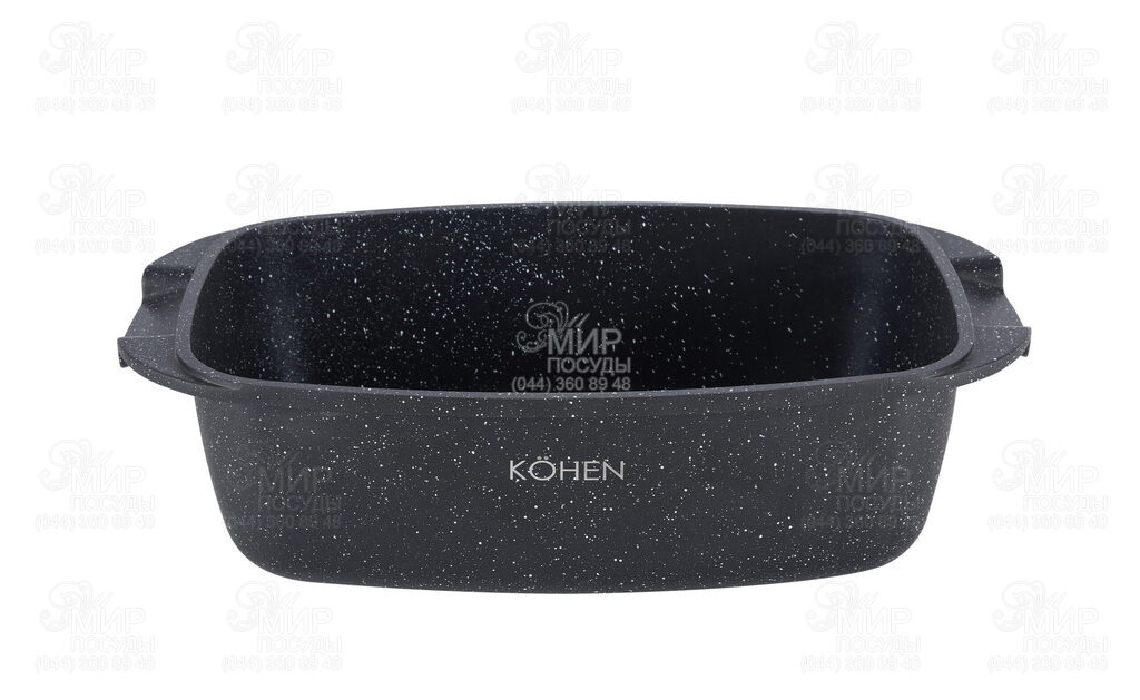 Гусятница с крышкой Master Roast от Kohen изготовлена из литого алюминия, имеет усиленное термоаккумулирующее дно и стенки, что обеспечивает равномерное распределение тепла по всей емкости. Покрытие Pfluon Granit устойчиво к царапинам, трехслойное, экологически чистое, противопригарное, усиленное керамическим компонентом. Крышка изготовлена из закаленного стекла.