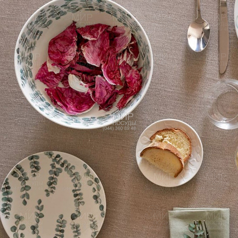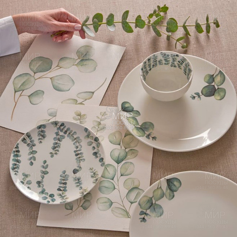 Коллекция Sempreverde от La Porcellana Bianca с нежным ботаническим декором – это воплощение спокойствия, природной гармонии и утонченного итальянского стиля. Акварельные веточки эвкалипта, выполненные в мягких зеленых оттенках, создают ощущение легкости и свежести, словно кусочек природы поселился на вашем столе. Этот дизайн идеально сочетает современную эстетику с классической элегантностью фарфора. Коллекция наполняет сервировку атмосферой уюта, тепла и неспешных моментов – для семейных завтраков, чаепитий или особых встреч с близкими.