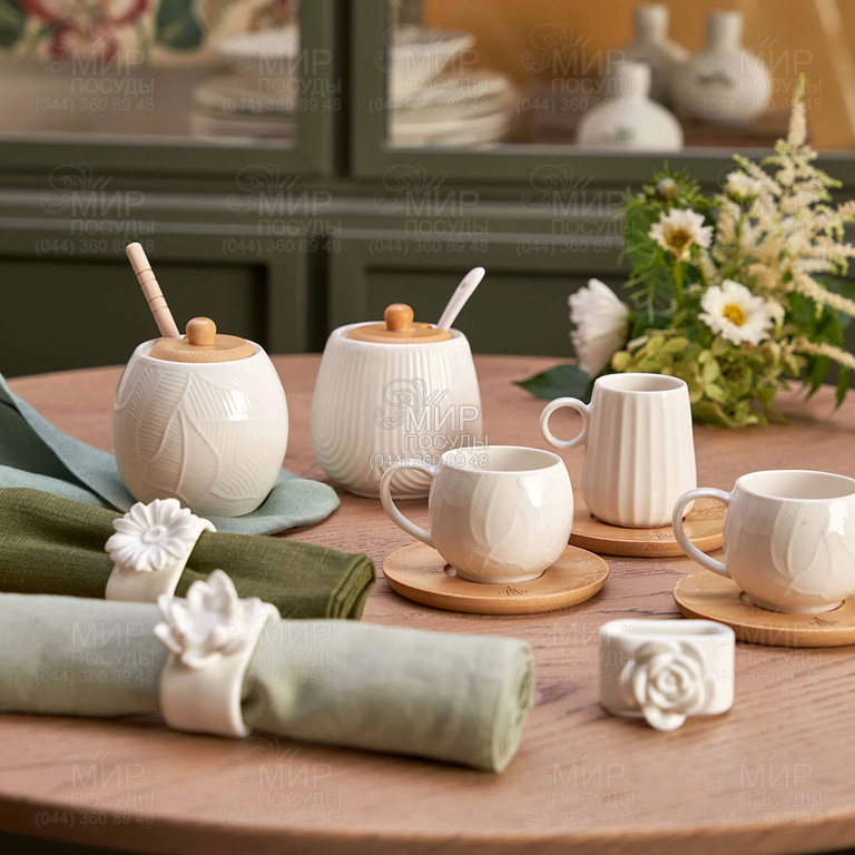 Коллекция Intavola от La Porcellana Bianca – это утонченная интерпретация современной классики, где естественная простота сочетается с итальянской элегантностью. Мягкие округлые формы, рельефные линии и теплые акценты из натурального дерева создают гармоничный образ, наполненный уютом и спокойствием. Каждый элемент коллекции выглядит сдержанно, но в то же время особенно — благодаря деликатному рельефу, напоминающему листья, лепестки или легкие волны. Белизна фарфора подчеркивает чистоту форм и придает сервированию ощущение света, пространства и природного равновесия. Деревянные крышечки и подставки добавляют тепла и создают приятный контраст с гладкой поверхностью фарфора.