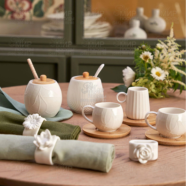 Коллекция Intavola от La Porcellana Bianca – это утонченная интерпретация современной классики, где естественная простота сочетается с итальянской элегантностью. Мягкие округлые формы, рельефные линии и теплые акценты из натурального дерева создают гармоничный образ, наполненный уютом и спокойствием. Каждый элемент коллекции выглядит сдержанно, но в то же время особенно — благодаря деликатному рельефу, напоминающему листья, лепестки или легкие волны. Белизна фарфора подчеркивает чистоту форм и придает сервированию ощущение света, пространства и природного равновесия. Деревянные крышечки и подставки добавляют тепла и создают приятный контраст с гладкой поверхностью фарфора.
