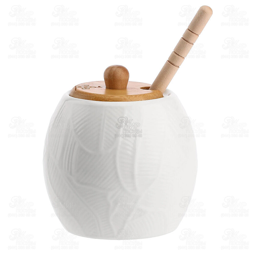 Мир посуды - Кухонная посуда - Емкости для продуктов - Дозы для мёда и джема - Доза для меда с крышкой и палочкой Intavola Leaves 250мл U10206091A83