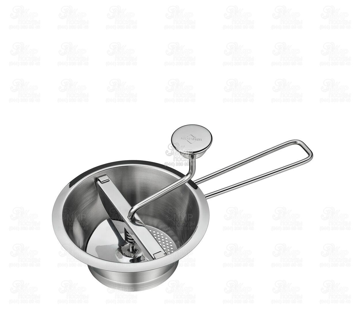 Сито механическое от Kuchenprofi тщательно измельчает продукты и идеально подходит для небольших порций. Прочное сито измельчает как волокнистые овощи, так и продукты с твердой кожурой, такие как яблоки или помидоры. С помощью этого практичного устройства вы также можете приготовить детское питание. Удобная рукоятка вращается плавно, а достаточно длинная ручка обеспечивает надежный хват.
