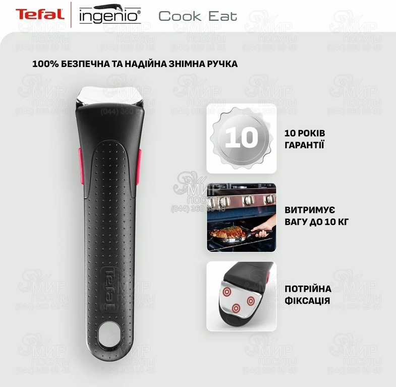 Набор посуды Ingenio Cook Eat от Tefal изготовлен из нержавеющей стали. Долговечное и 100% безопасное антипригарное покрытие Titanium защищает емкости, а после использования посуду легко чистить. Индикатор Thermo-Spot определяет оптимальную температуру приготовления, обеспечивая всегда идеальные результаты. Из плиты в духовку, затем на стол, в холодильник или посудомоечную машину. Благодаря продуманному дизайну без встроенных ручек сковороды и кастрюли складываются друг в друга, сохраняя больше свободного пространства в шкафу. Запатентованная снимаемая безопасная ручка выдерживает вес до 10 кг. Чрезвычайно большой индукционный диск и плотная основа Thermo-Fusion Tefal гарантирует быстрый нагрев и равномерное распределение тепла по всей сковороде для равномерно приготовленных блюд.