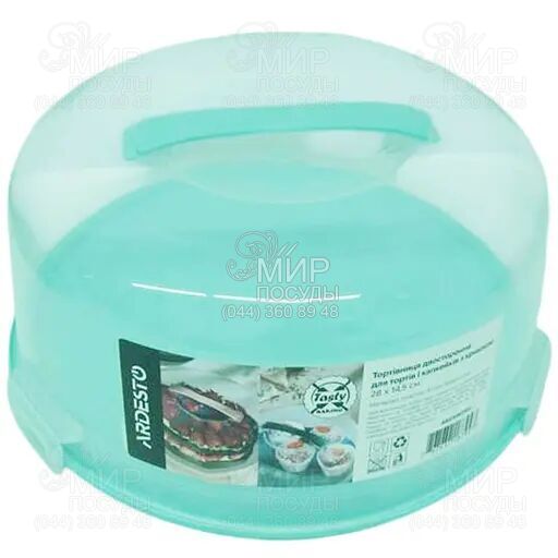Пластиковая тортовница с ручкой от Ardesto обладает круглой формой и удобным универсальным размером.