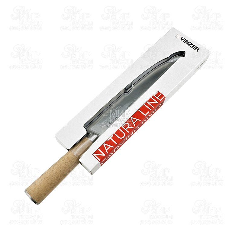 Нож Natura Line от бренда Vinzer изготовлен из высокоуглеродистой стали, устойчивой к механическим повреждениям и коррозии. Деревянная ручка удобна в использовании, имеет эргономичный дизайн и не скользит во время работы. Лезвие имеет клиновидное сечение, поэтому режущая кромка долгое время сохраняет остроту и не нуждается в частых заточках. Нож позволит тонко и аккуратно нарезать разные продукты.