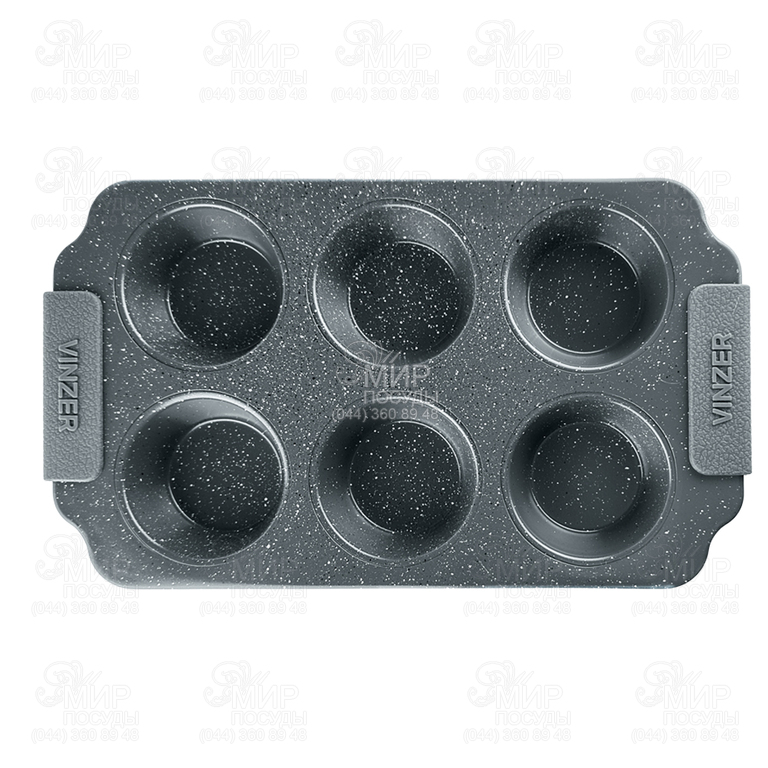 Форма для маффинов Dolci Line от бренда Vinzer изготовлена из качественной углеродистой стали. Покрытие формы двухслойное, антипригарное, устойчивое к воздействию высоких температур и механических повреждений. Для удобства использования на ручках имеются силиконовые накладки, которые предохранят руки от ожогов.