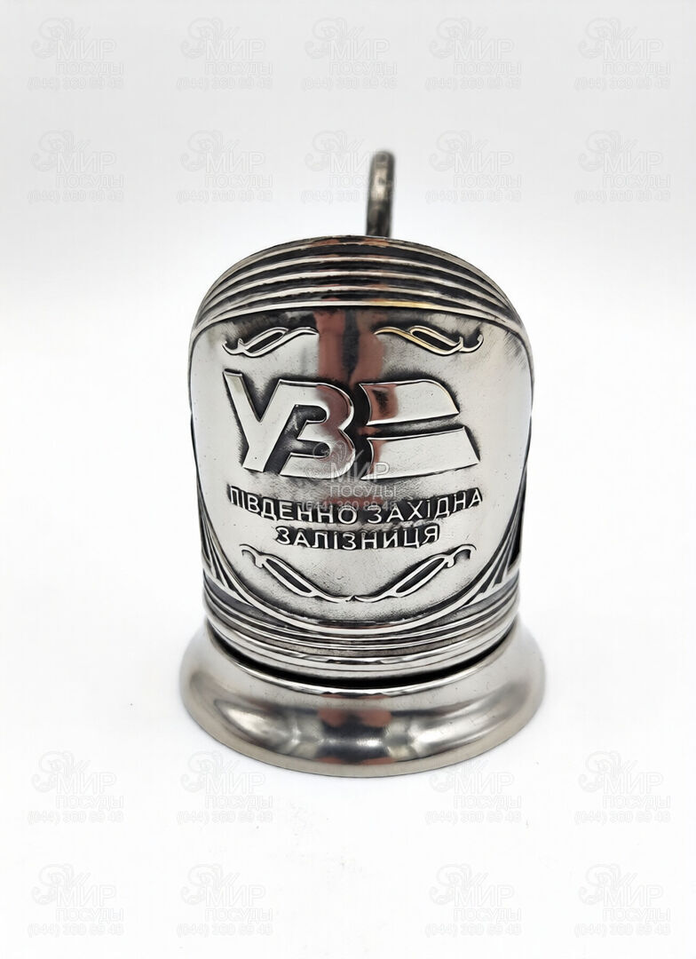 Современный, мельхиоровый подстаканник - спецзаказ (ограниченное количество) для компании Укрзализныця. Подстаканник выполнен в уникальной технологии на единственном в Украине производстве Серебряная Поляна в городе Вольнянск.