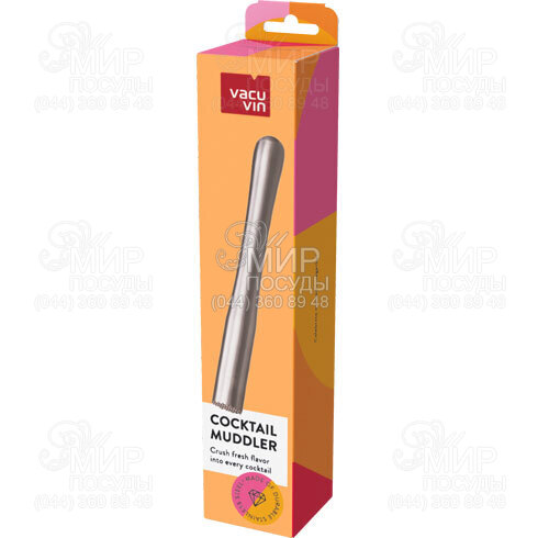 Мадлер Cocktail muddler от нидерландского производителя Vacu Vin изготовлен из нержавеющей стали. Элегантный и крепкий мадлер – идеальный инструмент для приготовления свежих коктейлей, таких как Мохито или Кайпиринья. Его конструкция позволяет эффективно высвобождать вкус и аромат трав, специй и фруктов непосредственно в посуде подачи или шейкере.