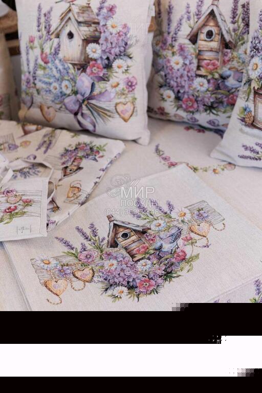 Коллекция гобеленового текстиля Лавандовый садик украинского бренда Прованс — это сочетание утонченного дизайна, качественных материалов и особой атмосферы уюта. Вдохновленная нежной флористикой и волшебными иллюстрациями, коллекция создает теплое, светлое настроение в доме и наполняет простор эстетикой спокойствия и гармонии. Гобеленовые изделия отличаются плотным переплетением нитей, благодаря чему рисунок выглядит объемным, глубоким и детализированным. Пастельная палитра, аккуратные орнаменты и продуманное оформление делают текстиль универсальным для кухни, столовой или гостиной. Коллекция отлично подходит как для ежедневного использования, так и для праздничной сервировки стола. В серии представлены скатерти, декоративные наволочки, салфетки, дорожки на стол и другие текстильные элементы, легко комбинирующиеся между собой, создавая цельный ансамбль.
