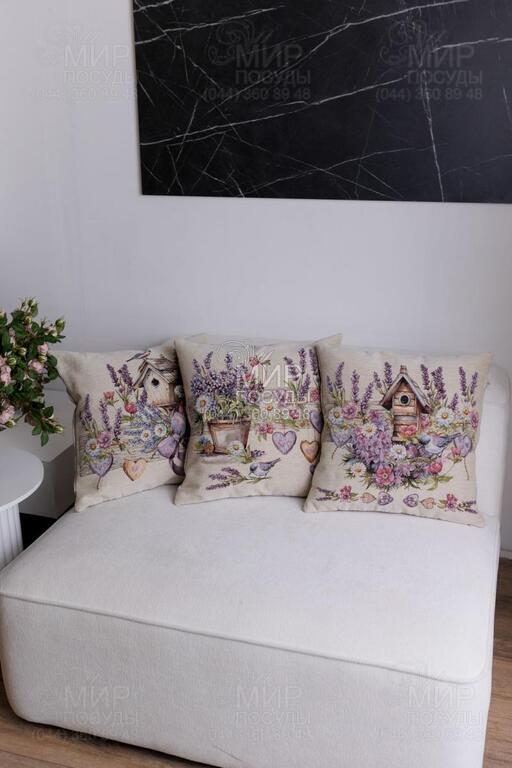 Мир посуды - Домашний интерьер - Подушки декоративные - Подушка декоративная Лавандовый садик Птичка на скворечнике 45х45см 4823093477414