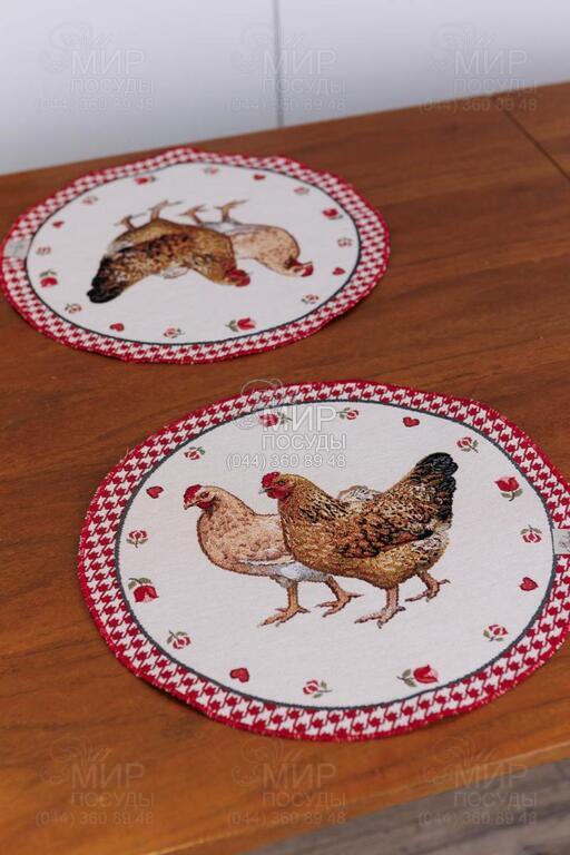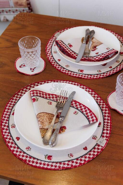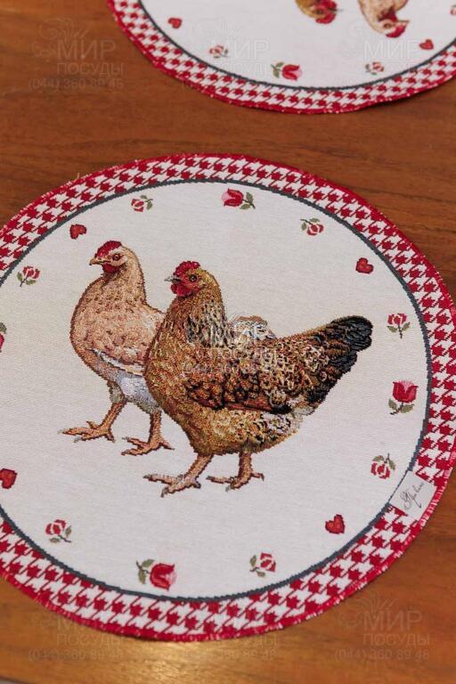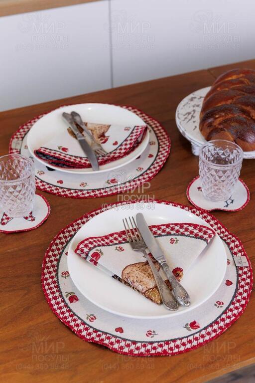 Коллекция гобеленового текстиля Благополучие от украинского бренда Прованс, с колоритным петухом, наполняет кухню атмосферой тепла, ароматом свежей выпечки и ощущением настоящего домашнего уюта. Дизайн вдохновлен фермерской тематикой: выразительные изображения петуха и курочки, мелкий орнамент в клетку, декоративные бордюры и теплая красно-молочная гамма создают атмосферу домашнего тепла и гастрономического уюта. Центральные композиции гармонично дополняются орнаментальными рамками и мелкими тематическими деталями, благодаря чему каждое изделие выглядит завершенным и декоративно насыщенным. Насыщенный красный цвет придает акцент, делая текстиль ярким элементом кухонного интерьера. Гобеленовое переплетение формирует объемный, глубокий рисунок, не наносимый поверх ткани, а сотканный в ее структуре. Благодаря этому изделия отличаются плотностью, долговечностью и износостойкостью, сохраняя форму и цвет даже при активном использовании. В серии представлены скатерти, салфетки, декоративные наволочки, прихватки, дорожки и кухонные аксессуары, легко комбинирующиеся между собой, создавая цельный ансамбль в стиле кантри или прованс.