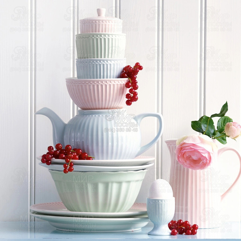 Коллекция Alice от датского бренда GreenGate – это сочетание скандинавского минимализма и ретро-стиля. Для посуды данной серии характерны округлые мягкие линии, легкий рельеф, сдержанная красота и практичность. Изделия Alice представлены в классическом белом цвете, нежных пастельных тонах, а также в более насыщенных цветах, таких как красный и темно-синий. Вы смело можете сочетать посуду Alice с другими коллекциями GreenGate и тем самым создавать свои оригинальные и неповторимые варианты сервировки. Особую изюминку посуде придает контраст между окрашенным ободком и белой основой.