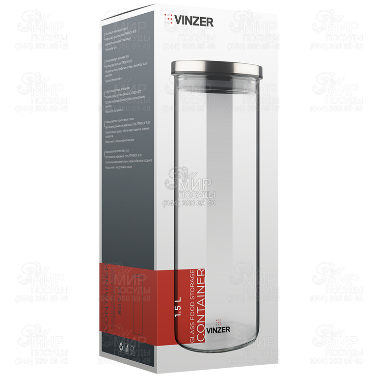 Мир посуды - Кухонная посуда - Емкости для продуктов - Банки для сыпучих - Емкость для сыпучих Vinzer 1,5л 50742