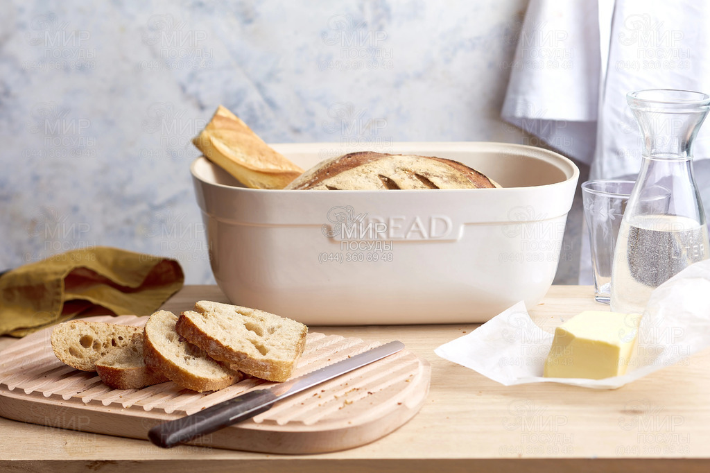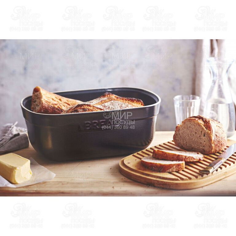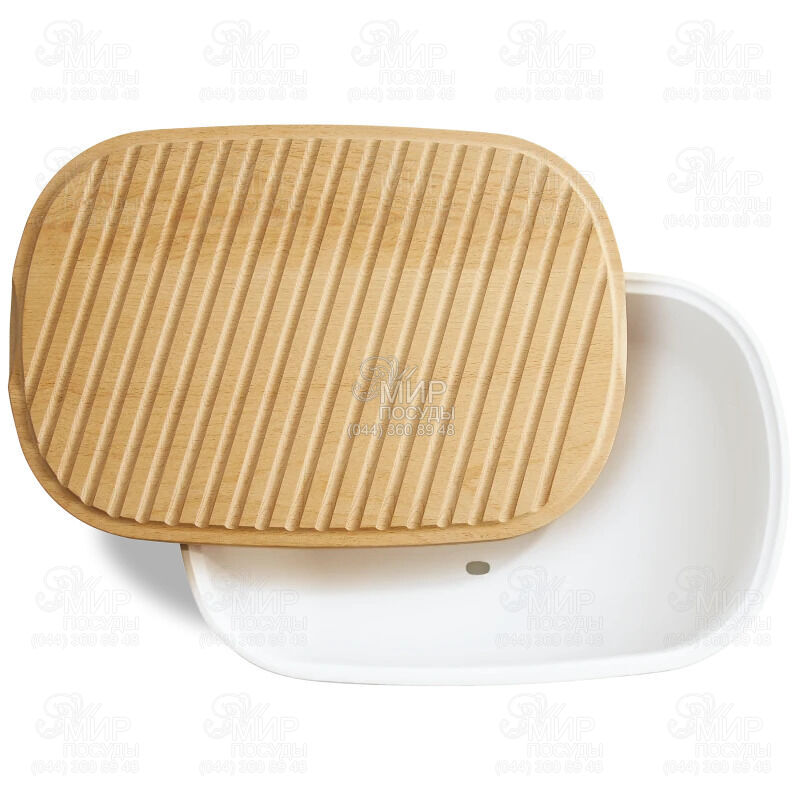 Доска-крышка для хлебницы от французского производителя Emile Henry создана с использованием натуральных материалов. Гладкая с верхней стороны и рифленая с обратной стороны доска предназначена для резки хлеба, сбора крошек и накрывания хлебницы.
