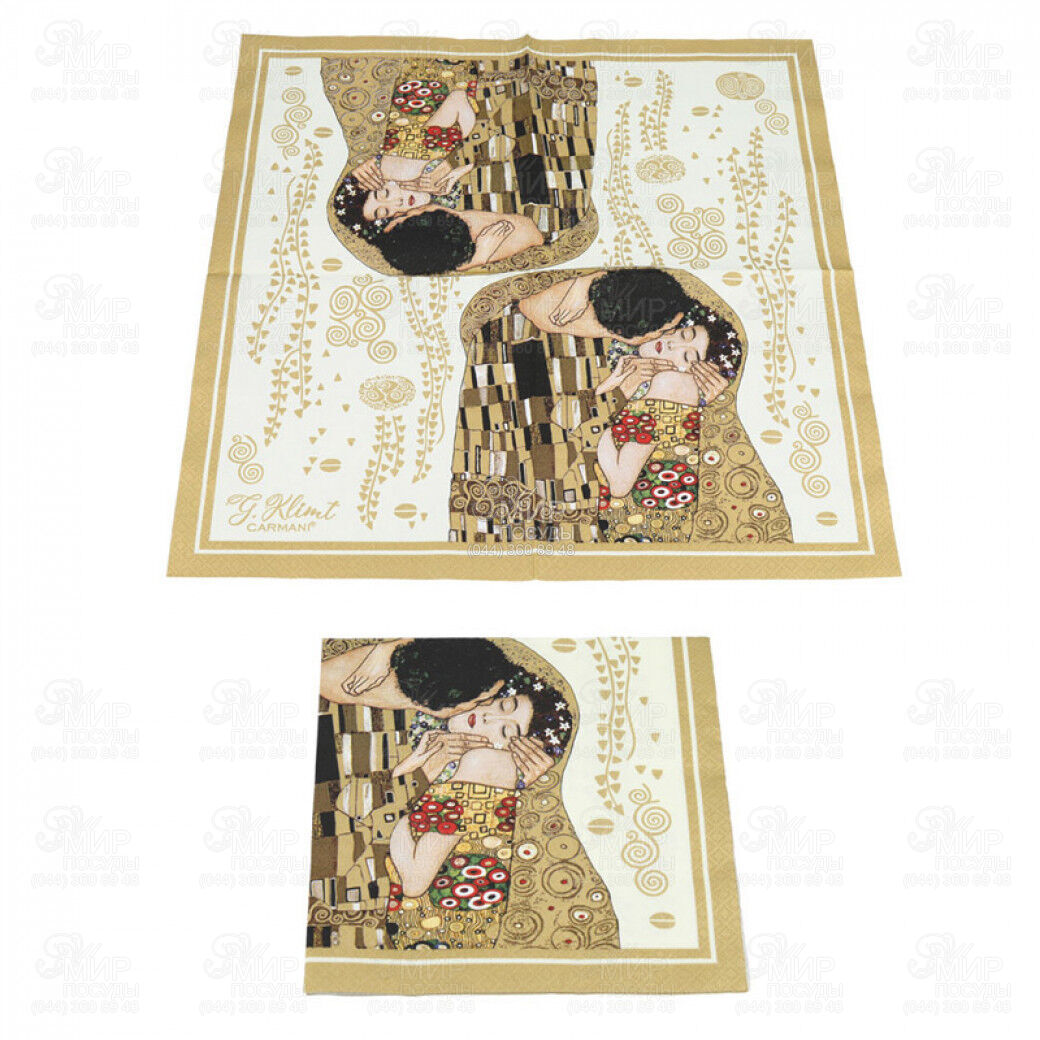 Бумажные салфетки от Carmani — стильный элемент сервировки стола, сочетающий практичность и искусство. Дизайн салфеток вдохновлен знаменитой картиной The Kiss австрийского художника Gustav Klimt. Изящный золотистый орнамент, декоративные узоры и романтический сюжет делают эти салфетки настоящим украшением праздничного или повседневного стола. Они отлично подойдут для элегантной сервировки, тематических ужинов, праздников или как стильный аксессуар для ценителей искусства.