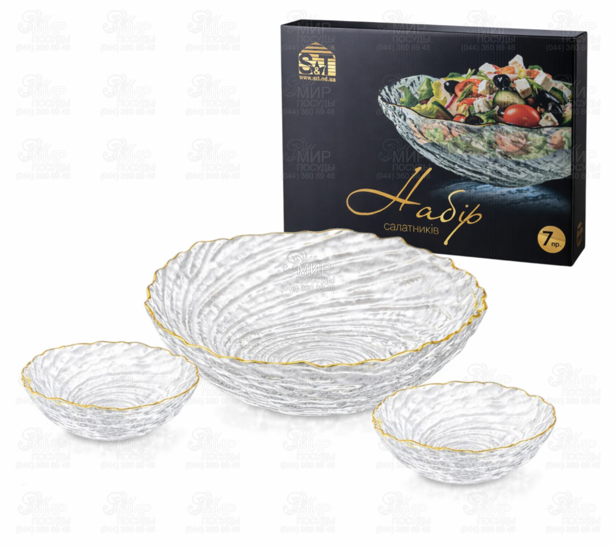Посуда от украинского бренда S&T – это воплощение утонченной элегантности и современной роскоши. Изделия выполнены из фактурного прозрачного стекла, а особый шарм придает изысканная окантовка золотистого цвета, которая подчеркивает форму посуды и придает сервировке праздничный и премиальный вид.