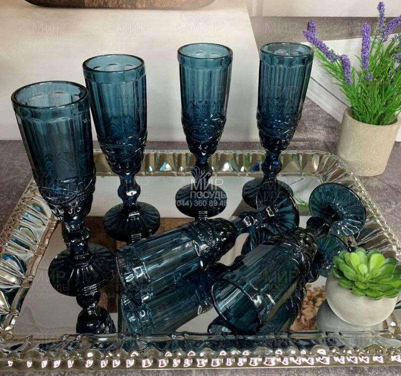 Мир посуды - Питьевая посуда - Бокалы - Бокалы для шампанского - Набор бокалов для шампанского Винтаж 180мл 9455 cobalt