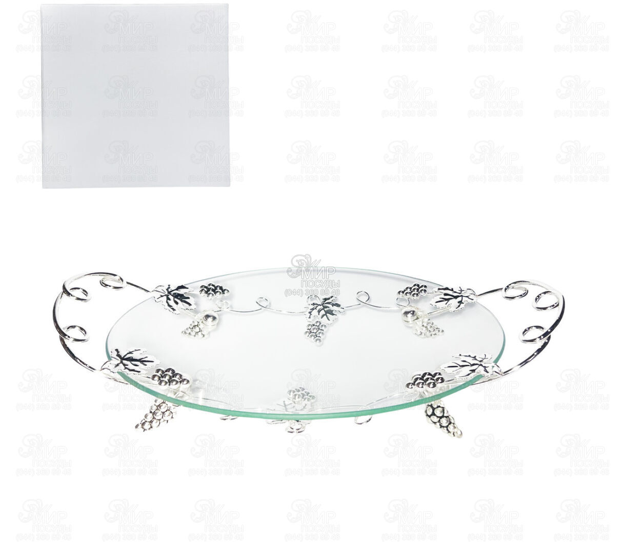 Серия Виноград от украинского бренда S&T – это изысканное сочетание стекла и металла, вдохновленное естественной элегантностью виноградной лозы. Изделия этой коллекции отличаются изящным дизайном с декоративными элементами в виде лозы винограда и листьев, что придает композициям объемности, легкости и особого шарма. Прозрачное стекло создает эффект чистоты и воздушности, позволяя красиво презентовать блюда, десерты или закуски, а металлические детали с благородным блеском подчеркивают премиальный характер изделий. Гармоничное сочетание материалов делает посуду не только функциональной, но и стильным акцентом сервировки. Особенностью серии являются декоративные изящные изгибы и украшения в виде виноградной лозы, что придает изделиям художественной выразительности и делает их похожими на настоящий элемент декора. Такая посуда идеально подходит как для праздничного стола, так и создания элегантной атмосферы во время особых событий.